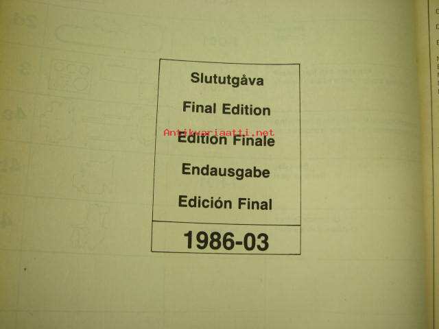| Saatavilla | 1 kpl | | Julkaisuvuosi | 1986 | | Kunto | K3 | | Sidonta/painoasu | Nidottu (pehmeäk.) | | Kielet | Ruotsi, Englanti |