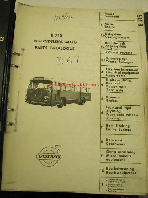 Volvo B 715 Reservdelskatalog, Parts Catalogue -varaosaluettelo