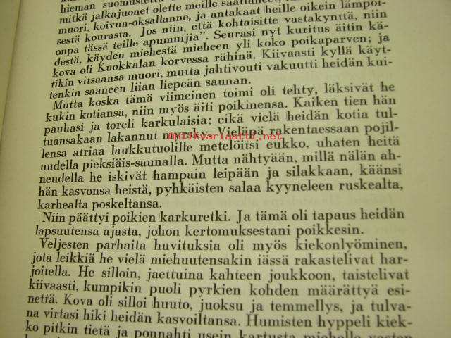 | Saatavilla | 1 kpl | | Julkaisuvuosi | 1946 | | Sivuja | 359 | | Painos | 2. | | Kunto | K2 | | Sidonta/painoasu | Sidottu (kovak.) | | Kielet | Suomi |