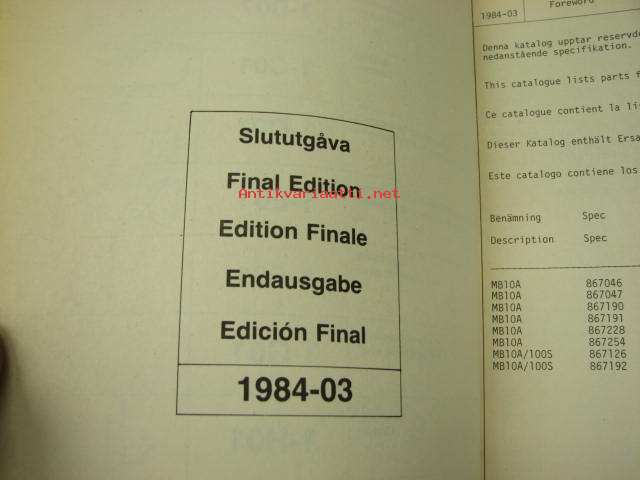 Volvo Penta MB 10 Reservdelskatalog, Parts Catalogue -varaosaluettelo