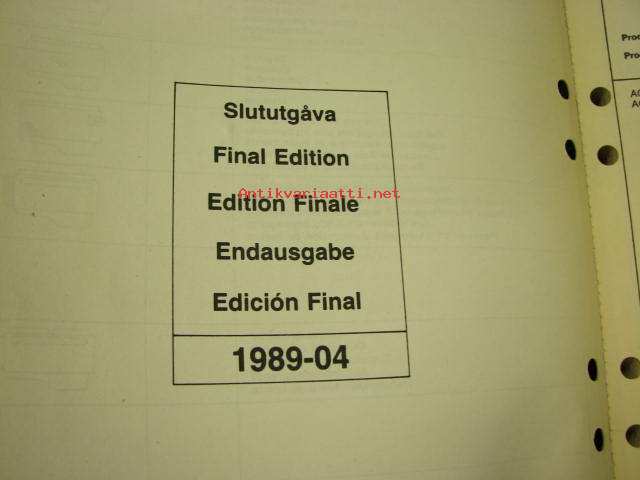 | Saatavilla | 1 kpl | | Julkaisuvuosi | 1989 | | Kunto | K3 | | Sidonta/painoasu | Nidottu (pehmeäk.) | | Kielet | Englanti, Ruotsi |