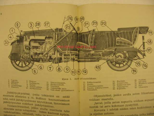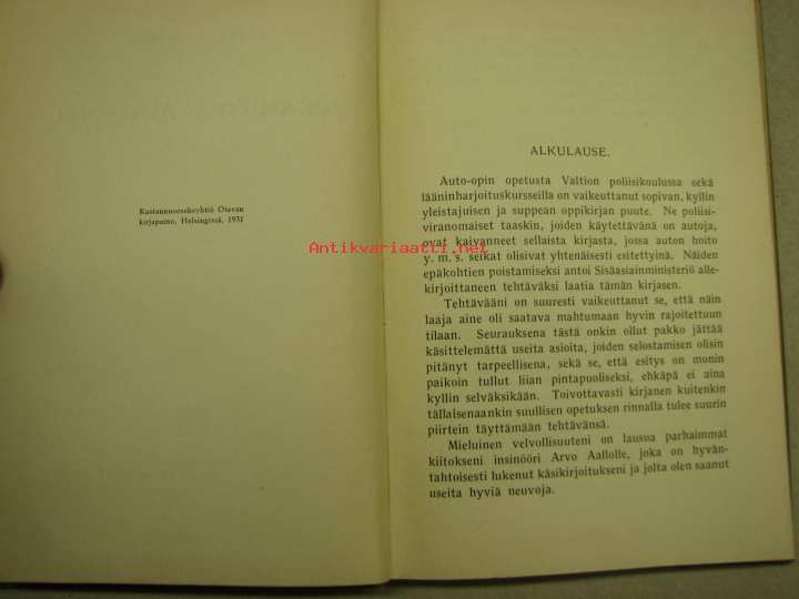 13 x 19 cm. Kirja on kirjoittajan esipuheen mukaan laadittu auto-opin opetukseen Valtion poliisikoulussa ja lääninharjoituskursseille. Varsin erikoinen teos alallaan, harvinainenkin verrattuna esim. "Automobiili-oppiin".