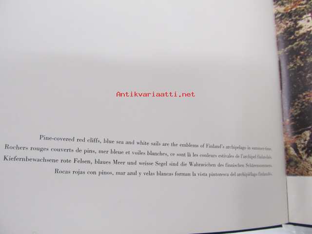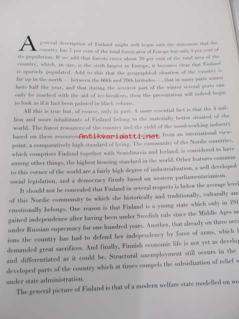 | Saatavilla | 1 kpl | | Julkaisuvuosi | 1960 | | Painos | 1. | | Kunto | K3 | | Sidonta/painoasu | Sidottu (kansipaperit) | | Kielet | Englanti, Ranska, Saksa, Espanja |