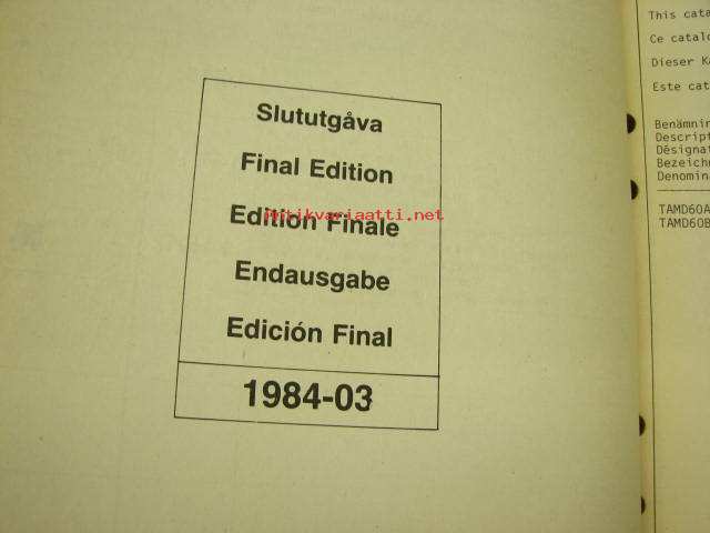 Volvo Penta TAMD 60A Parts Catalogue, Reservdelskatalog -varaosaluettelo