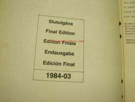| Saatavilla | 1 kpl | | Julkaisuvuosi | 1984 | | Kunto | K3 | | Sidonta/painoasu | Nidottu (pehmeäk.) | | Kielet | Englanti, Ruotsi |
