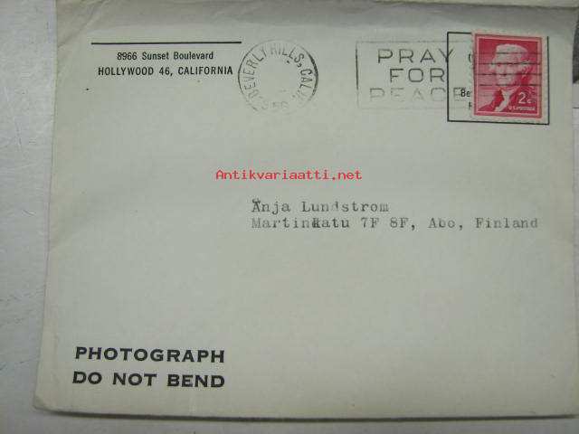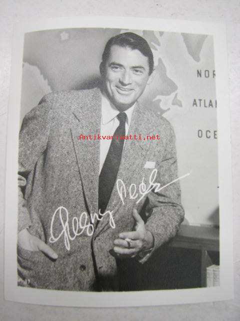 Gregory Peck -filmitähden ihailijakortti, lähetetty Turkuun, painettu nimikirjoitus