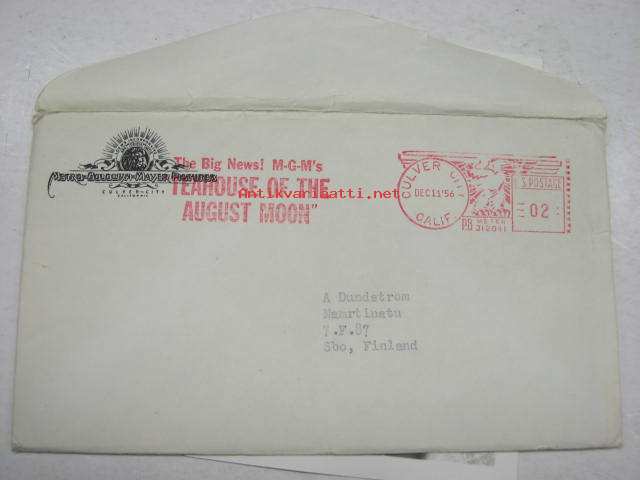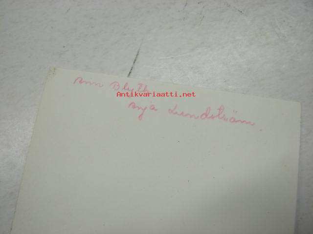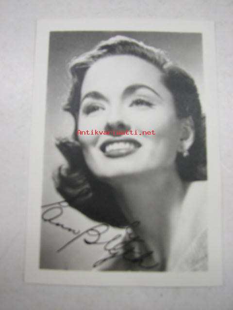 Ann Blyth -filmitähden ihailijakortti, lähetetty Turkuun, painettu nimikirjoitus