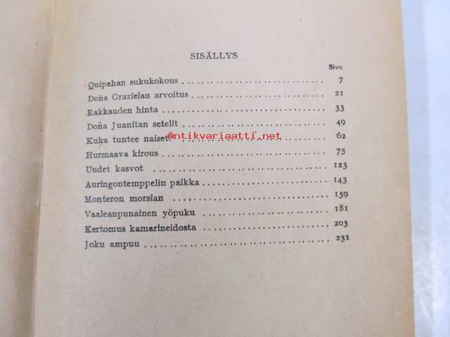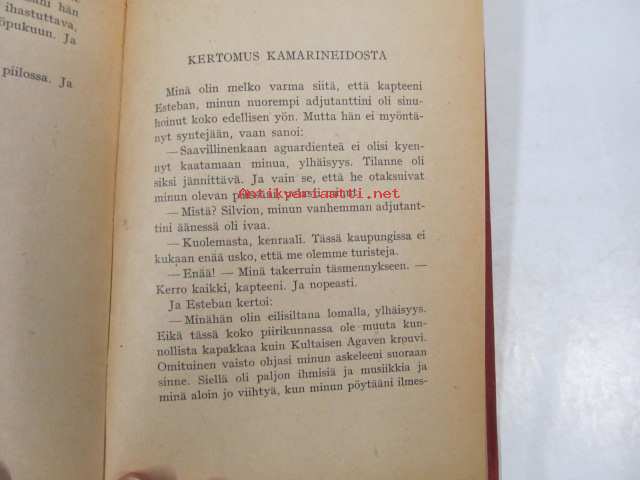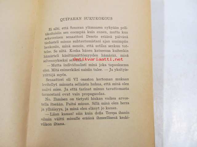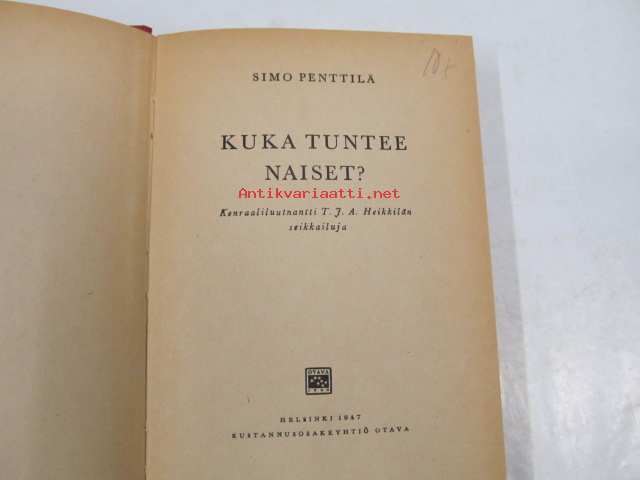 | Saatavilla | 1 kpl | | Julkaisuvuosi | 1947 | | Sivuja | 237 | | Painos | 1. | | Kunto | K3 | | Sidonta/painoasu | Sidottu (kovak.) | | Kielet | Suomi |