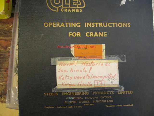 Coles Cranes operating instructions for S.301 serial no 20068