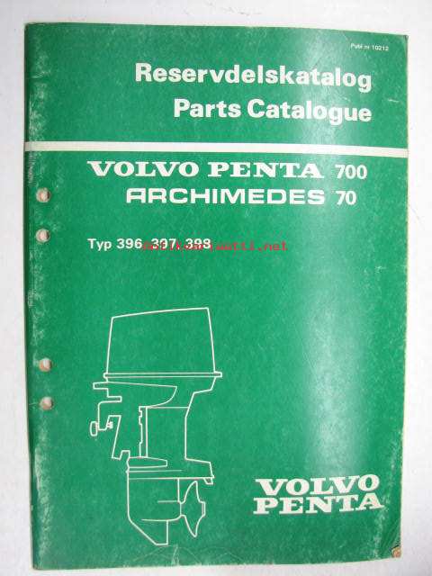 Volvo-Penta 700 Archimedes 70, typ 396, 397, 398 Reservdelskatalog, Parts Catalogue -varaosaluettelo