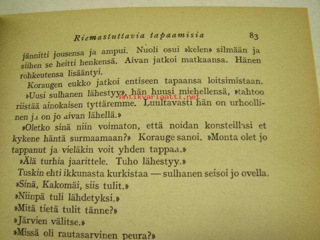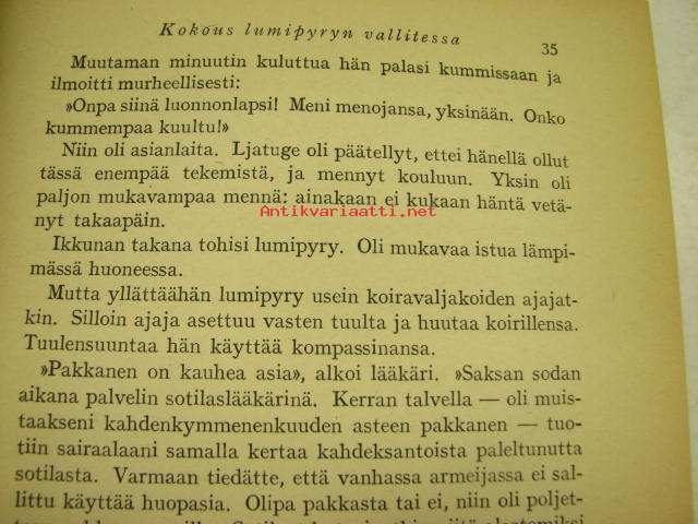 | Saatavilla | 1 kpl | | Julkaisuvuosi | 1945 | | Sivuja | 244 | | Kunto | K3 | | Sidonta/painoasu | Sidottu (kovak.) | | Kielet | Suomi |