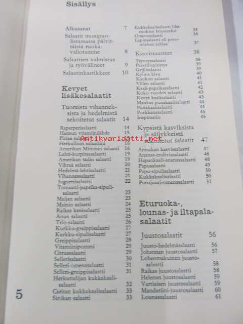 Stenqvist Eija, Mikkonen Seija, Me naiset, 1970Koottu Me naiset -lehden salaattikilpailuun lähetetyistä vastauksista
