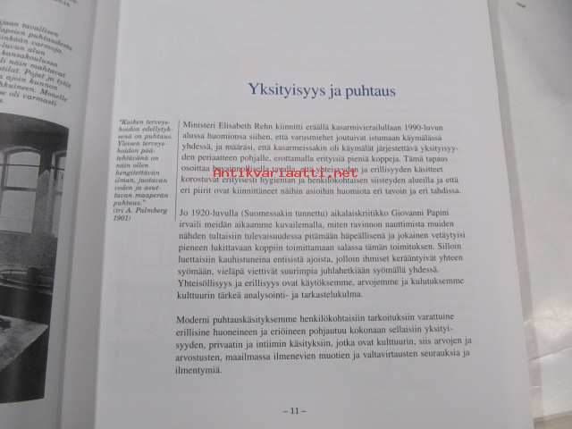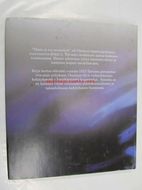 | Saatavilla | 1 kpl | | Julkaisuvuosi | 2001 | | Sivuja | 180 | | Painos | 1. | | Kunto | K3 | | Sidonta/painoasu | Sidottu (kansipaperit) | | ISBN | 952-91-3861-X | | Kielet | Suomi |