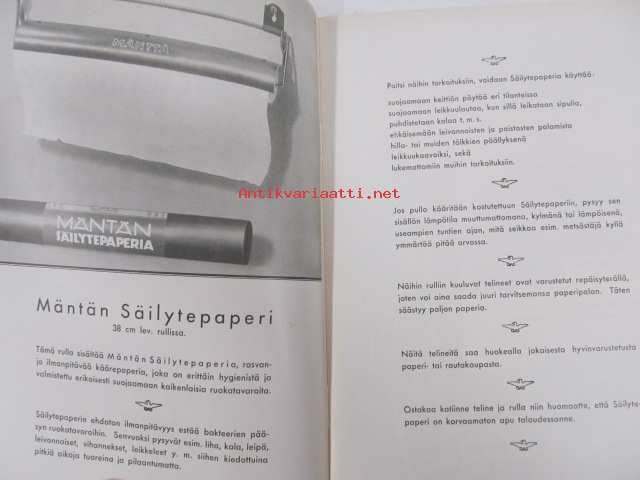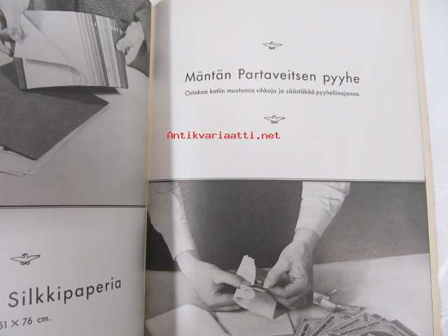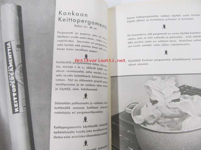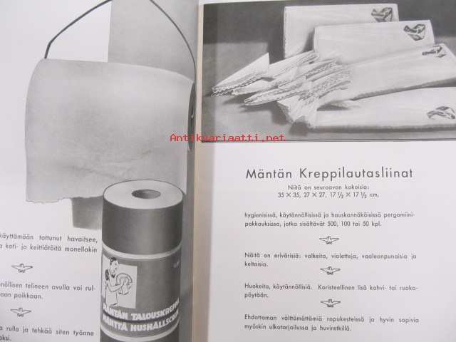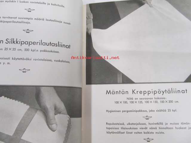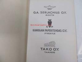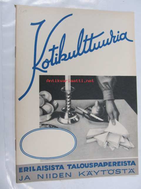 Kotikulttuuria, erilaisista talouspapereista ja niiden käytöstä (G.A. Serlachius Oy, Kankaan Paperitehdas, Tako O.Y. tuootteiden esittelykirjanen, runsas kuvitus)