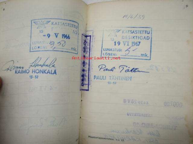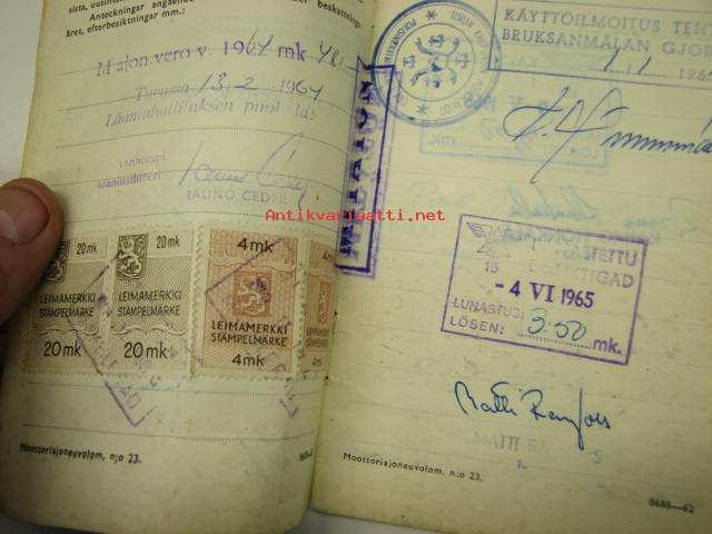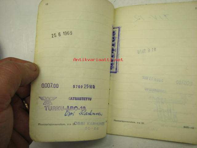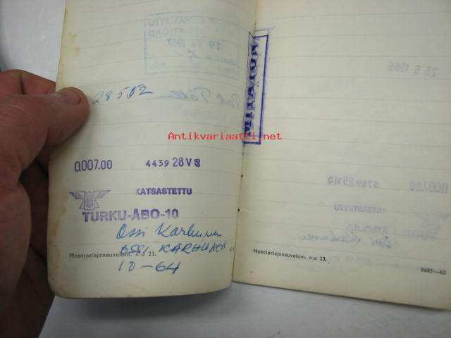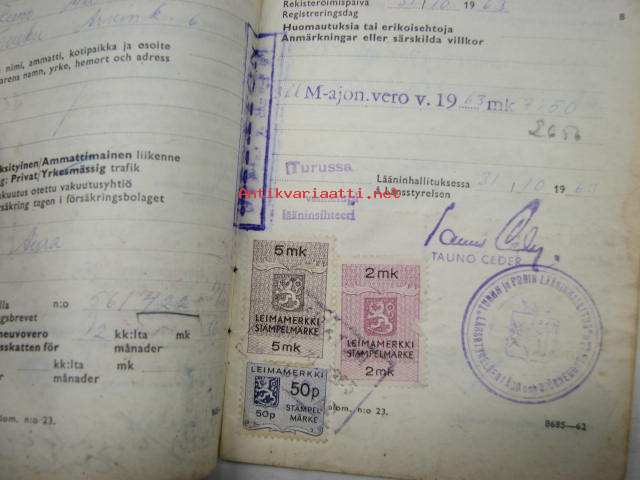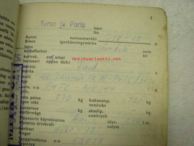 Ford 2D Taunus 12M henkilöauto -rekisteriote / vehicle registration book