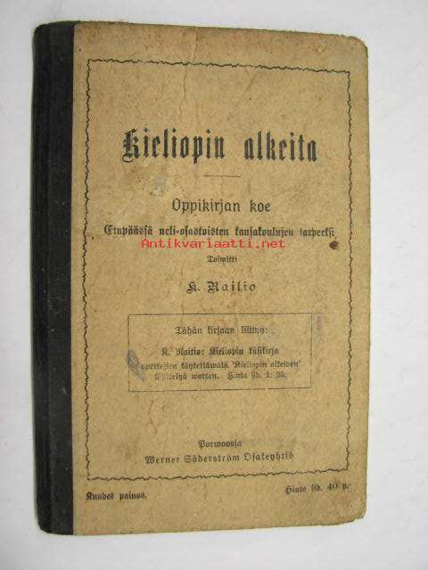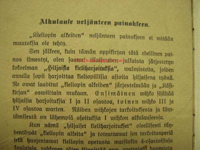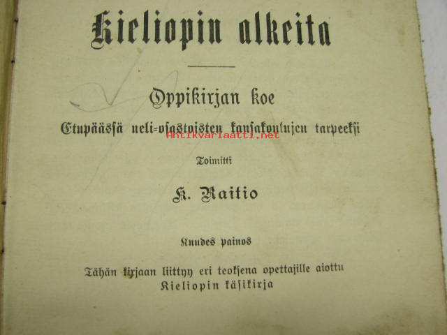 Kieliopin alkeita - oppikirja koe - Etupäässä neli-osastoisten kansakoulujen tarpeeksi Toimitti A. Raitio 1912