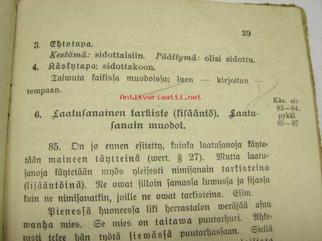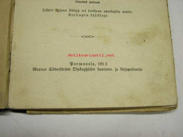 | Saatavilla | 1 kpl | | Julkaisuvuosi | 1912 | | Sivuja | 49 | | Painos | 6. | | Kunto | K2 | | Kulunut | | Sidonta/painoasu | Sidottu (kovak.) | | Kielet | Suomi |