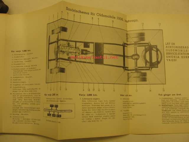GM, 1936Alkuperäinen auton mukana toimitettu käyttöohjekirja ruotsiksi.