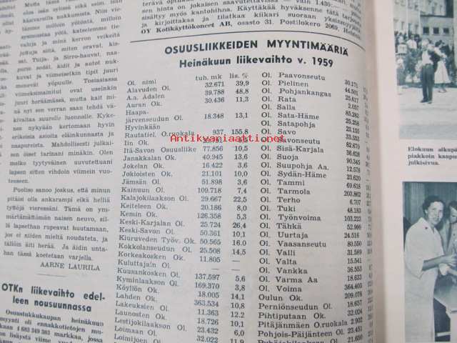 Kuluttaja 1959 nr 33, osuusliikkeiden myyntimääriä heinäkuu