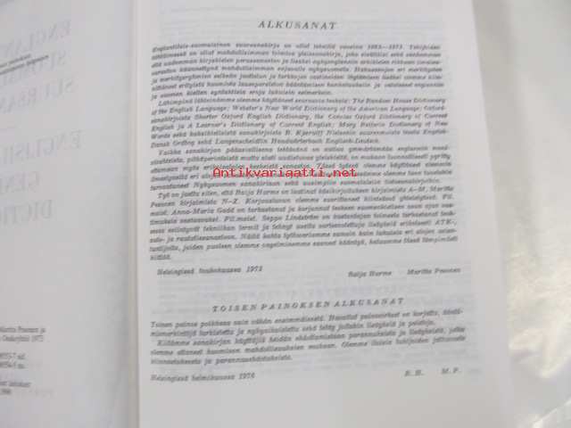 | Saatavilla | 1 kpl | | Julkaisuvuosi | 1990 | | Sivuja | 1182 | | Painos | 9./2. | | Kunto | K2 | | Sidonta/painoasu | Sidottu (kovak.) | | ISBN | 951-0-08553-7 | | Kielet | Suomi, Englanti |