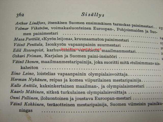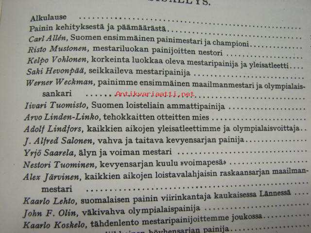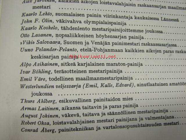 Suomalaisia mestaripainijoita Carl Allenista Väinö Kokkiseen.