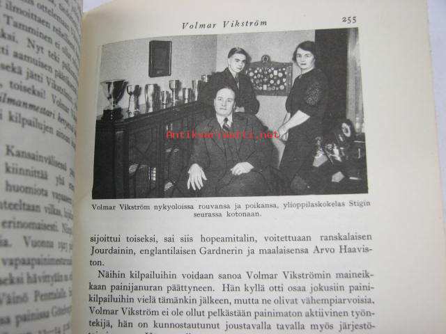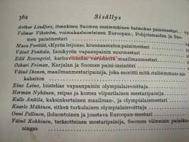 | Saatavilla | 1 kpl | | Julkaisuvuosi | 1939 | | Sivuja | 362 | | Painos | 1. | | Kunto | K2 | | Sidonta/painoasu | Sidottu (kovak.) | | Kielet | Suomi |