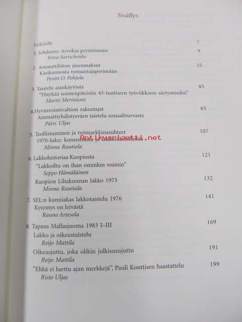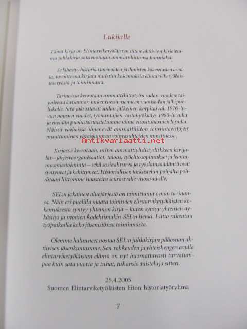 | Saatavilla | 1 kpl | | Julkaisuvuosi | 2005 | | Sivuja | 325 | | Painos | 1. | | Kunto | K4 | | Sidonta/painoasu | Sidottu (kansipaperit) | | ISBN | 952-99292-6 | | Kielet | Suomi |
