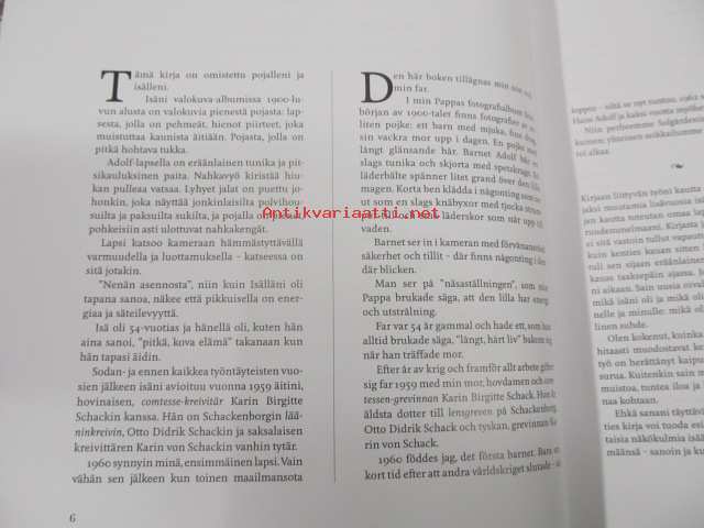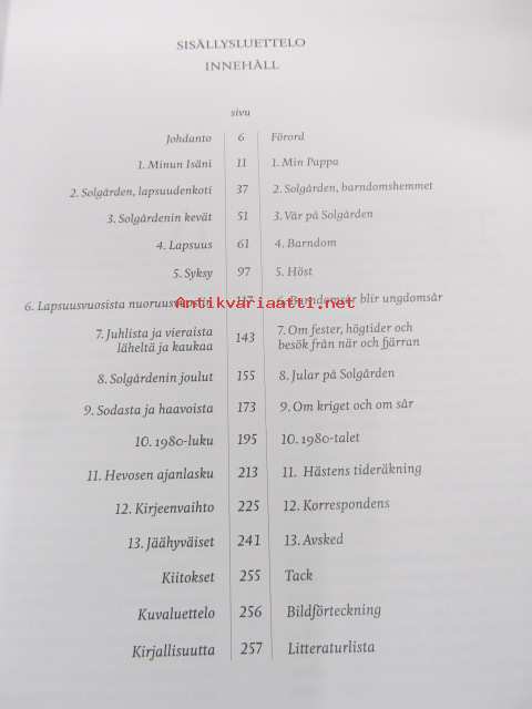 | Saatavilla | 1 kpl | | Julkaisuvuosi | 2008 | | Sivuja | 253 | | Painos | 2. | | Kunto | K4 | | Sidonta/painoasu | Sidottu (kansipaperit) | | ISBN | 978-951-20-7213-2 | | Kielet | Suomi, Ruotsi |