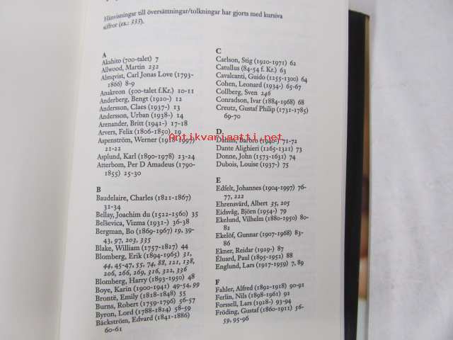 | Saatavilla | 1 kpl | | Julkaisuvuosi | 2002 | | Sivuja | 357 | | Painos | 1. | | Kunto | K3 | | Sidonta/painoasu | Sidottu (kansipaperit) | | ISBN | 91-518-3984-9 | | Kielet | Ruotsi |