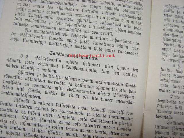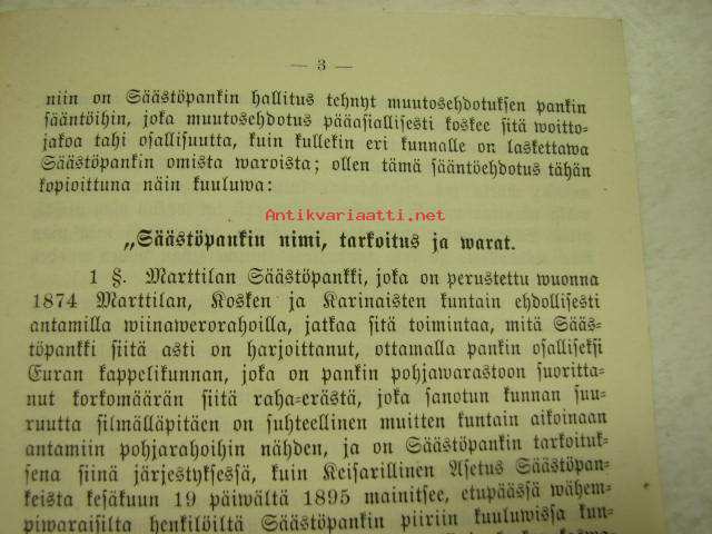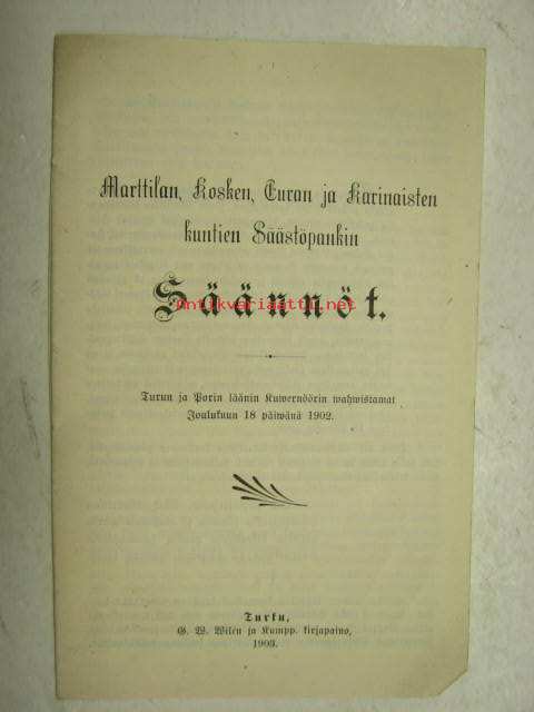 Marttilan, Kosken, Auran ja Karinaisten kuntien Säästöpankin säännöt 1902