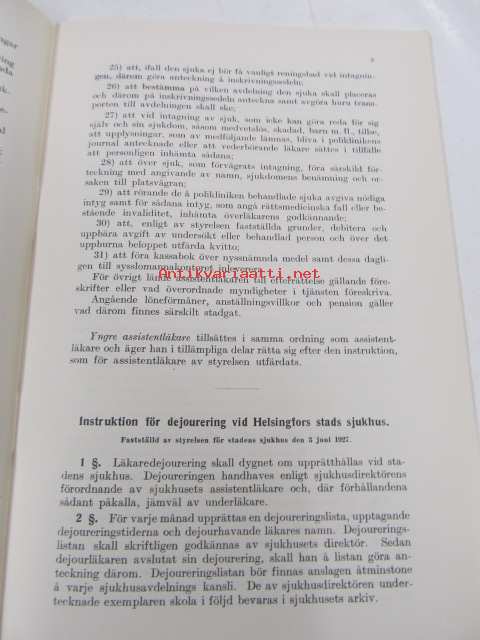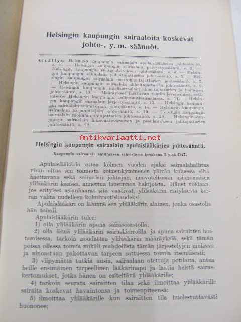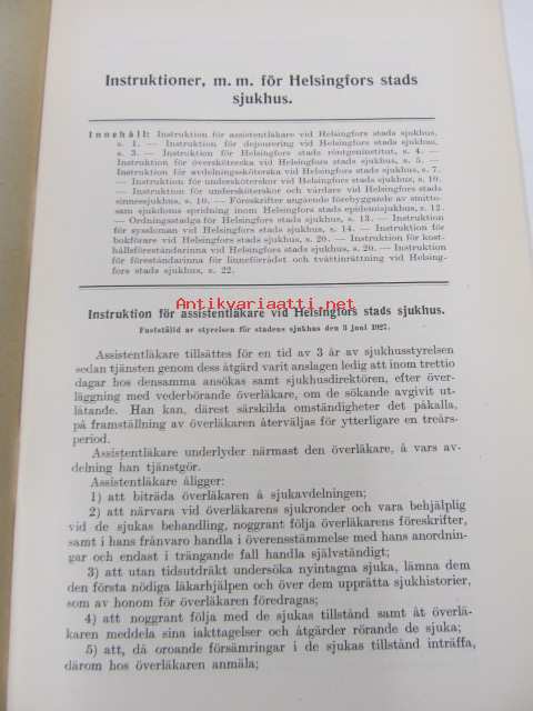 Helsingin kaupungin sairaaloita koskevat johto- y. m. säännöt / Instruktioner m. m. för Helsingfors stads sjukhus