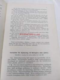 | Saatavilla | 1 kpl | | Julkaisuvuosi | 1927 | | Sivuja | 22, 22 | | Painos | 1. | | Kunto | K3 | | Sidonta/painoasu | Vihko | | Kielet | Suomi, Ruotsi |