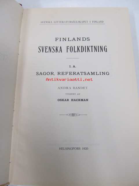Finlands svenska folkdikting I. A. Sagor, referatsamling. Andra bandet
