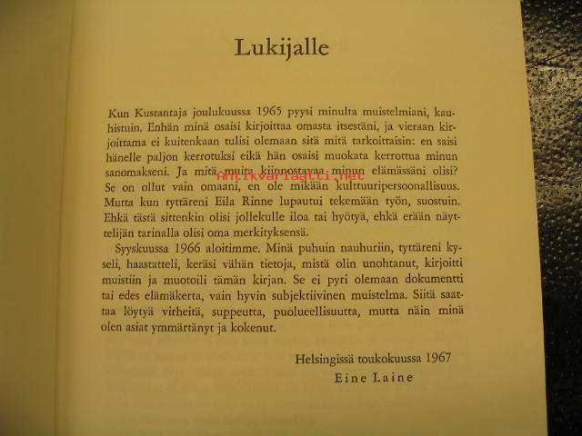 Laine Eine, Tammi, 1967Eine Laine muistelmat, sisältää m/v valokuvia