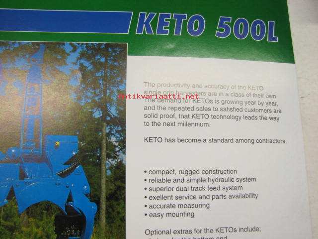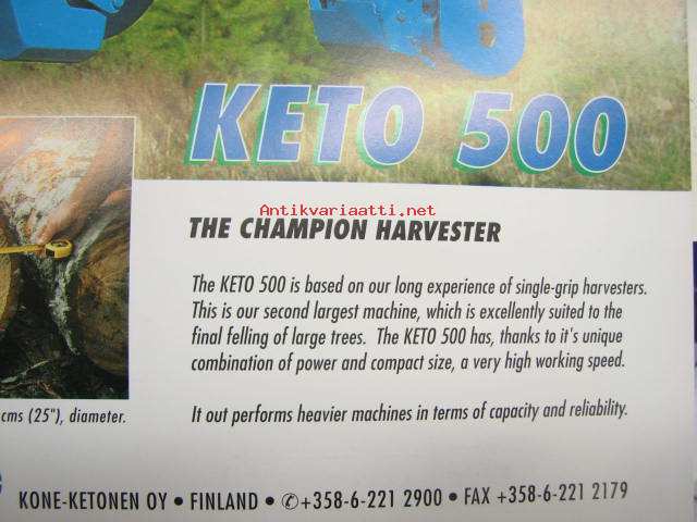 Keto 500 harvester -brochure, myyntiesite englanniksi