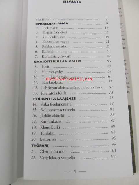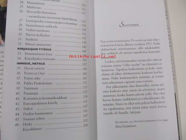 | Saatavilla | 1 kpl | | Julkaisuvuosi | 2000 | | Sivuja | 208 | | Painos | 2 | | Kunto | K4 | | Sidonta/painoasu | Sidottu (kansipaperit) | | ISBN | 951-0-24699-9 | | Kielet | Suomi |