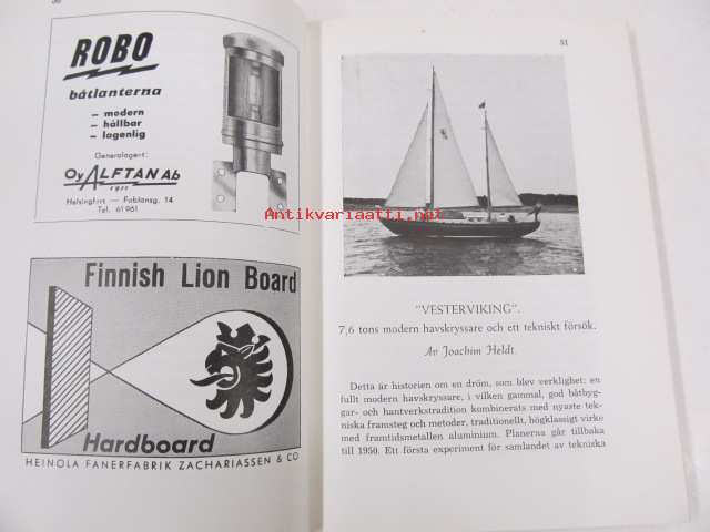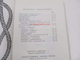 | Saatavilla | 1 kpl | | Julkaisuvuosi | 1958 | | Sivuja | 182 | | Painos | 1 | | Kunto | K3 | | Sidonta/painoasu | Nidottu (pehmeäk.) | | Kielet | Suomi, Ruotsi |