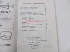 | Saatavilla | 1 kpl | | Julkaisuvuosi | 1959 | | Sivuja | 182 | | Painos | 1 | | Kunto | K3 | | Sidonta/painoasu | Nidottu (pehmeäk.) | | Kielet | Suomi, Ruotsi |