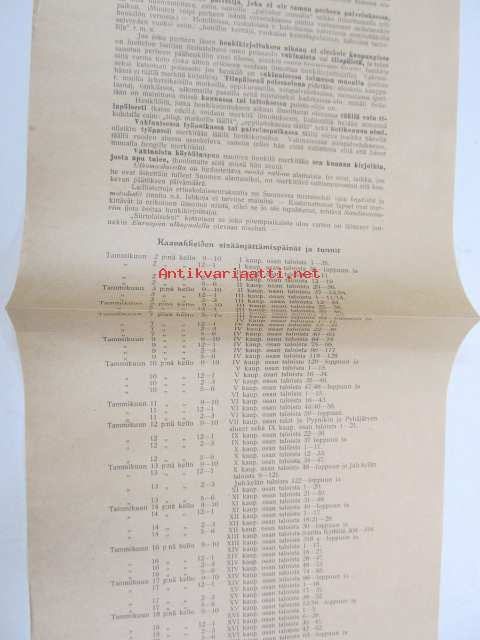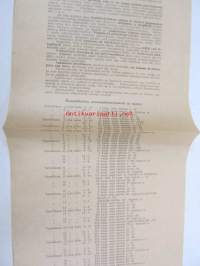 | Saatavilla | 1 kpl | | Julkaisuvuosi | 1922 | | Sivuja | 1 | | Kunto | K2 | | repeämä reunassa | | Kielet | Suomi |