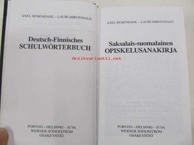 | Saatavilla | 1 kpl | | Julkaisuvuosi | 1989 | | Sivuja | 673 | | Kunto | K3 | | Sidonta/painoasu | Sidottu (kovak.) | | ISBN | 951-0-15950-6 | | Kielet | Saksa, Suomi |