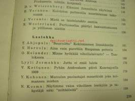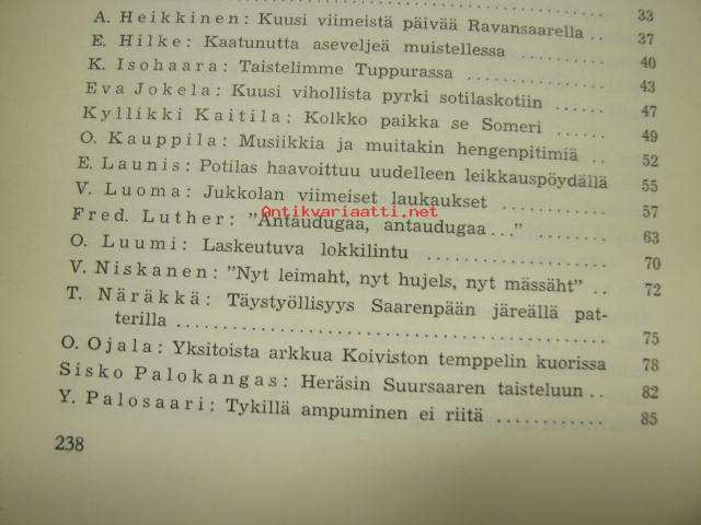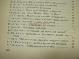 | Saatavilla | 1 kpl | | Julkaisuvuosi | 1957 | | Sivuja | 240 | | Painos | 1. | | Kunto | K3 | | Sidonta/painoasu | Sidottu (kansipaperit) | | Kielet | Suomi |
