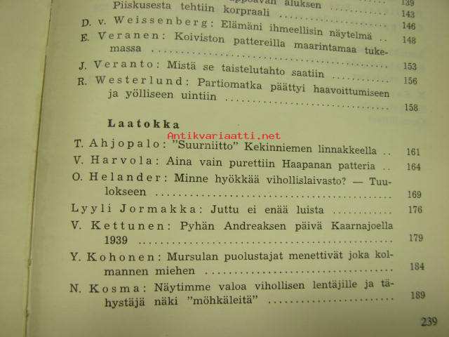 Simonen N (toim.), Valkama E-V (toim.), Perkki J (toim.), Silvast P (toim), Rannikkotykistön Upseeriyhdistys, 195715 x 22 cm.