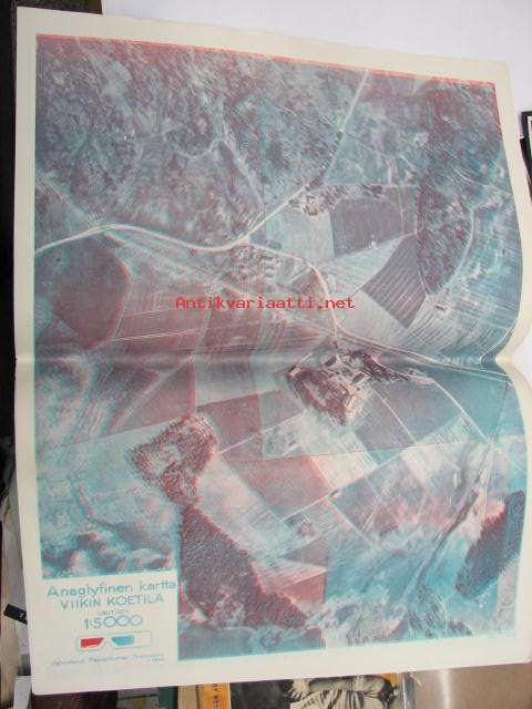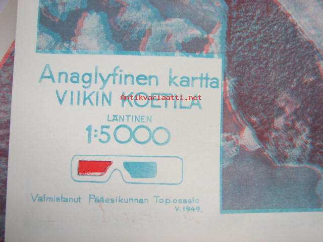 Anaglyfinen kartta - Viikin koetila Läntinen 1:5 000 / Pääesikunnan Topografinen osasto v. 1949 + Zeiss Aerotopograph-katselulasit