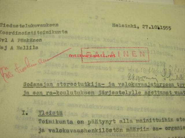 Sekalaista sotaan liittyvää materiaalia. Kansion nimilappuun kirjoitattu "Evl U. Pönkänen".