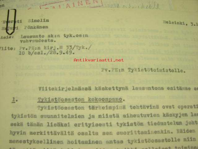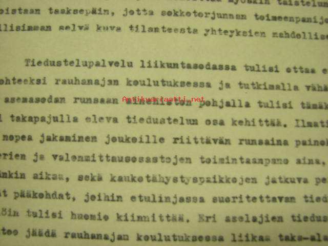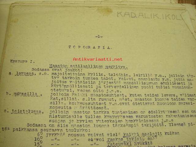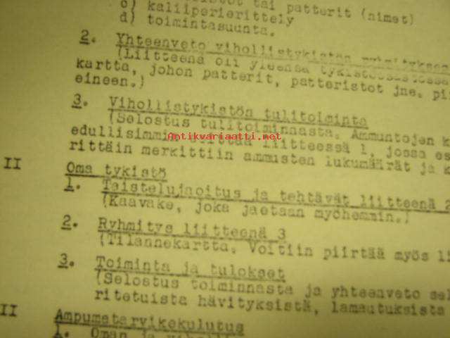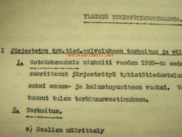 Tykistön tiedustelutoiminta -koulutustoimintaa ja sotakokemuksia ym. sekalaista sodanjälkeistä upseerikoulutuksen aineistoa -kansio