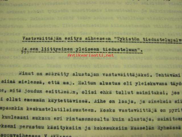 | Saatavilla | 1 kpl | | Kunto | K3 | | Sidonta/painoasu | Pienpainate | | Kielet | Suomi |
