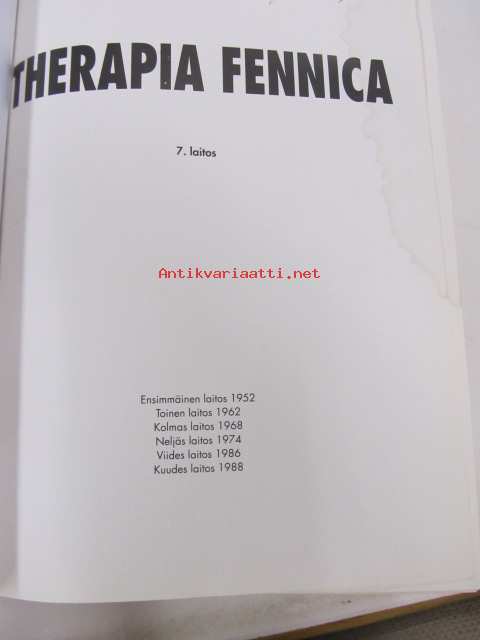 | Saatavilla | 1 kpl | | Julkaisuvuosi | 1991 | | Sivuja | 1357 | | Painos | 7. laitos | | Kunto | K3 | | Sidonta/painoasu | Sidottu (kovak.) | | ISBN | 951-8951-04-7 | | Kielet | Suomi |