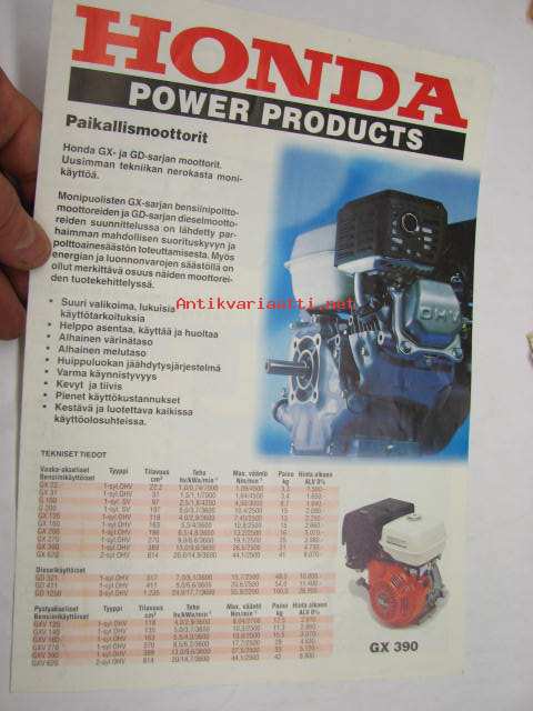 Honda power equipment paiikallismoottorit GX-, GD-sarjat -myyntiesite