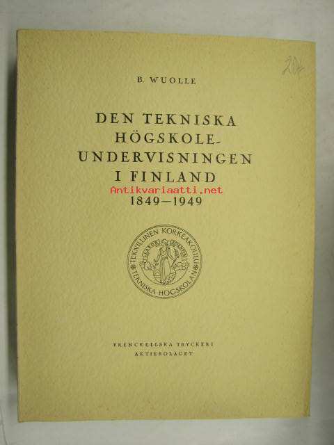 Wuolle B., Tekniska Högskolan, 194921 x 25 cm kirja.