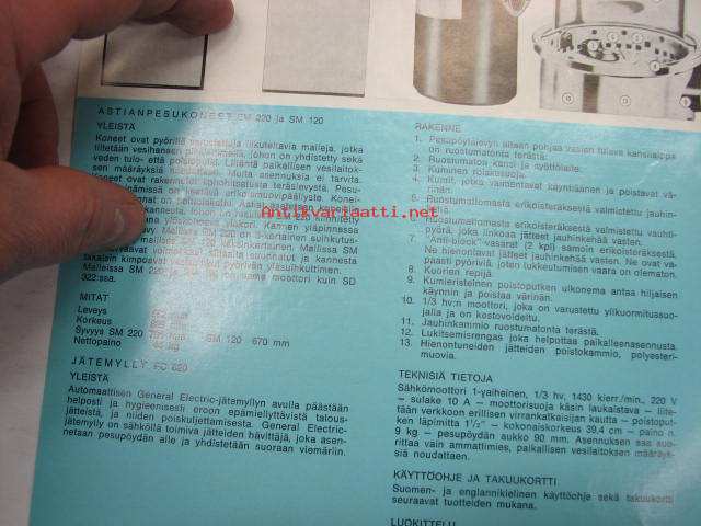 General Electric astianpesukoneet ja jätemylly -myyntiesite